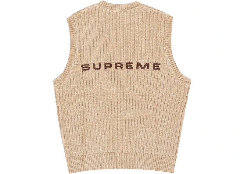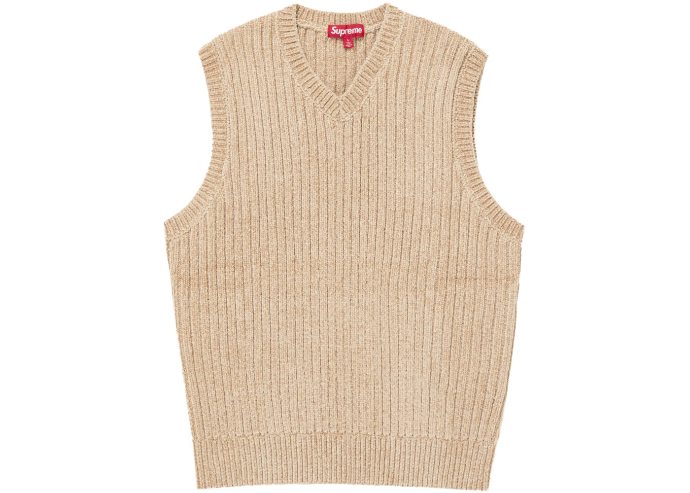 The Supreme Chenille Sweater Vest Beige is now available at Side Kicks!