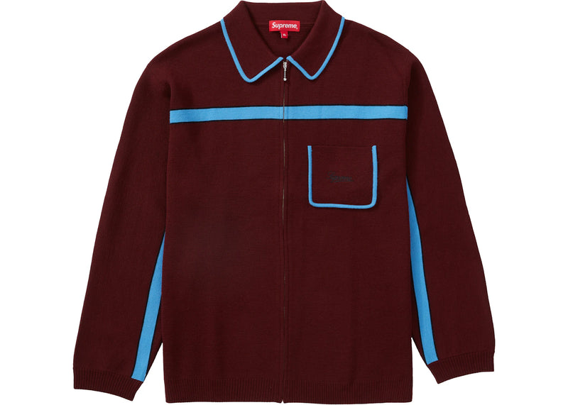 Supreme Chest Stripe Zip Up Cardigan Burgundy