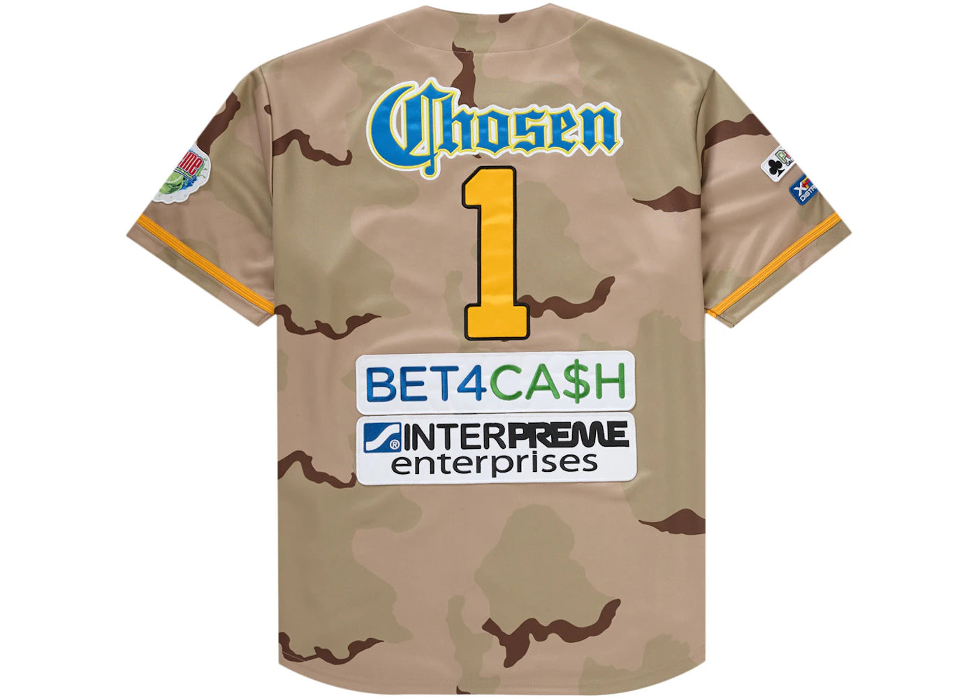 The Supreme Chosen One Baseball Jersey Desert Camo is now available at Side Kicks!