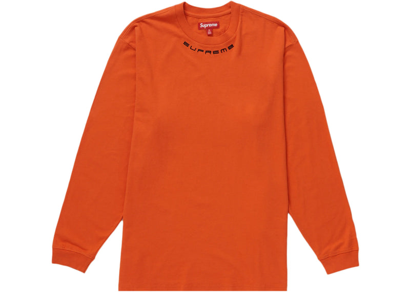 The Supreme Collar Logo L/S Top Orange is now available at Side Kicks!