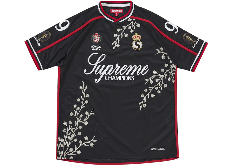 The Supreme Floral Soccer Jersey Black is now available at Side Kicks!