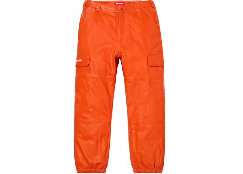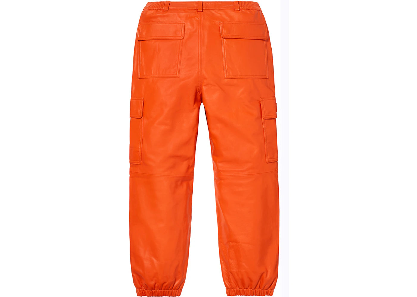 The Supreme Leather Cargo Pants Orange is now available at Side Kicks!