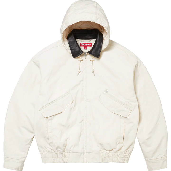 The Supreme Leather Collar Utility Jacket - Stone is now available at Side Kicks!