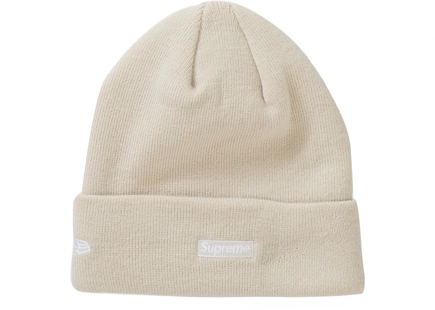 The Supreme New Era Script Beanie Natural is now available at Side Kicks!