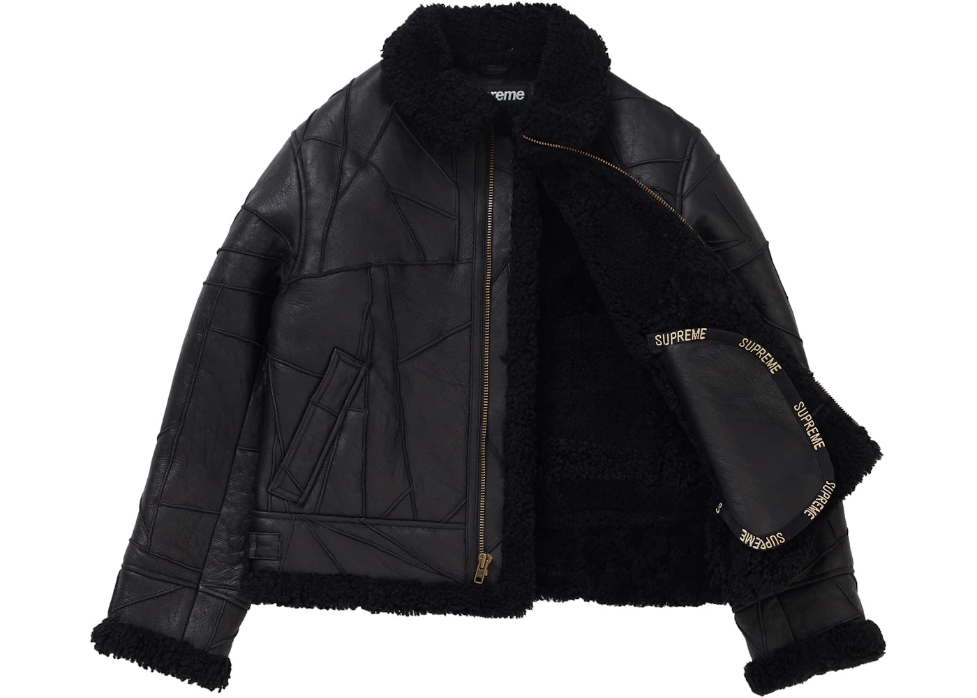 The Supreme Patchwork Shearling B-3 Jacket Black is now available at Side Kicks!