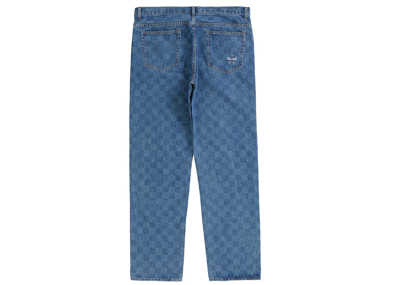 The Supreme Regular Jean (FW20) Washed Checkerboard features washed checkerboard denim with a deep blue hue and subtle darker check pattern. It has a classic 5-pocket design with a button...