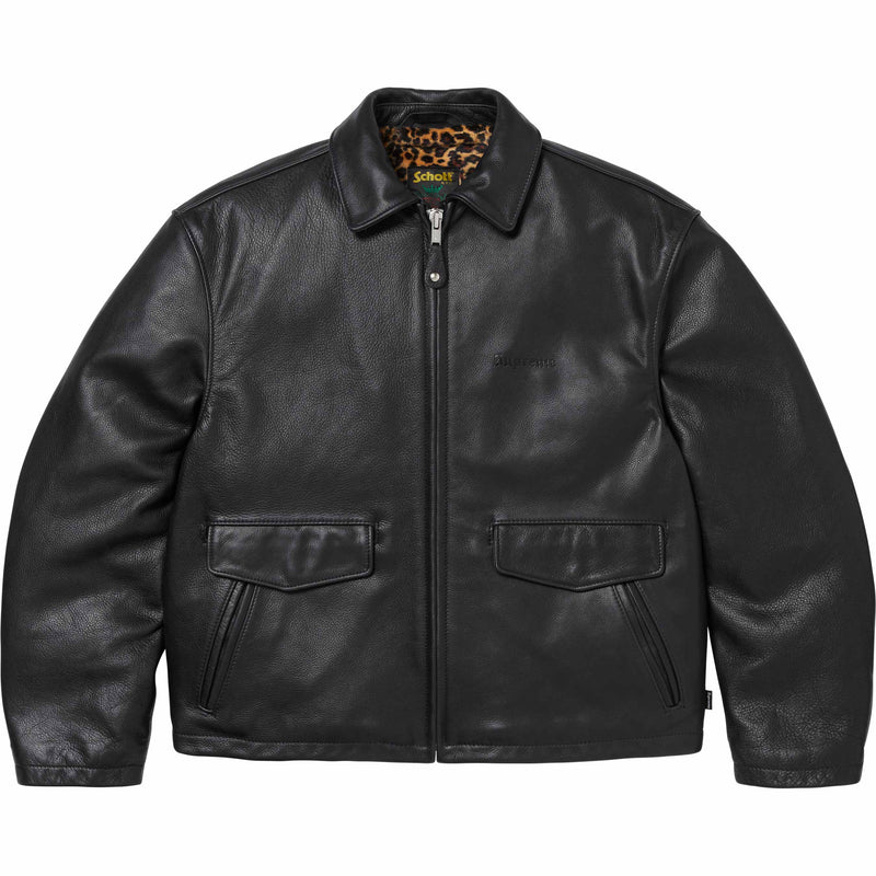 The Supreme/Schott Leather Racer Jacket - Black is now available at Side Kicks!