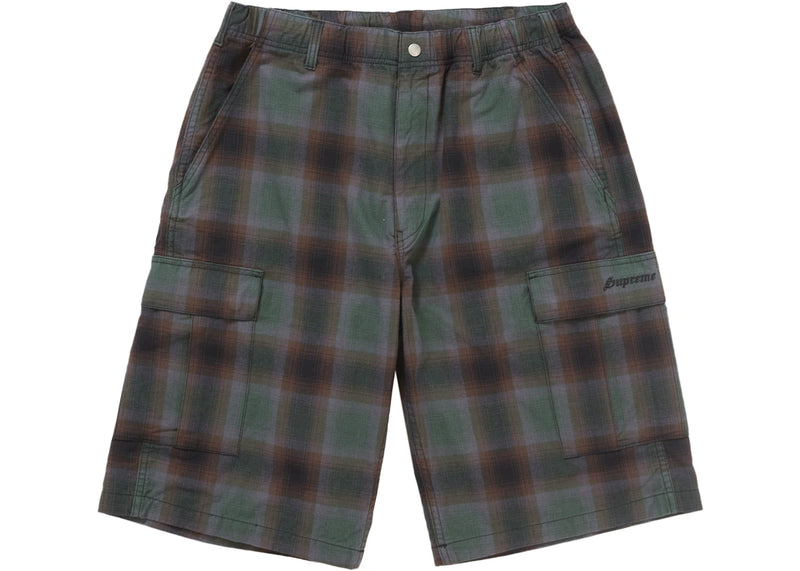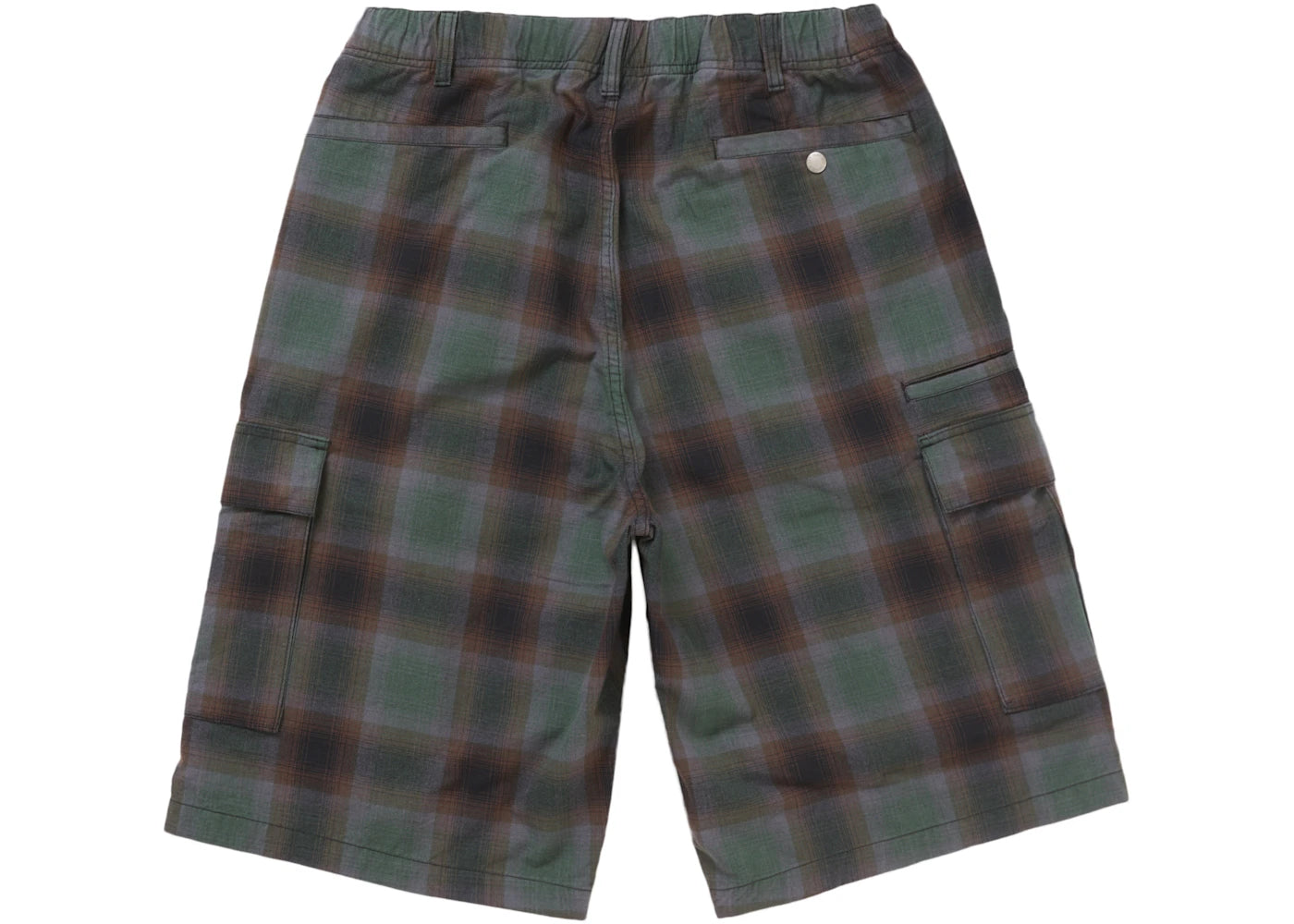 The Supreme Shadow Plaid Cargo Short Green is now available at Side Kicks!