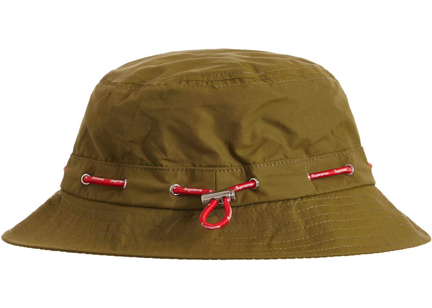 The Supreme Shockcord Nylon Crusher Olive is now available at Side Kicks!