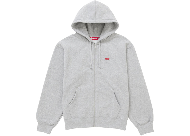 The Supreme Small Box Zip Up Hooded Sweatshirt (SS25) Heather Grey is now available at Side Kicks!
