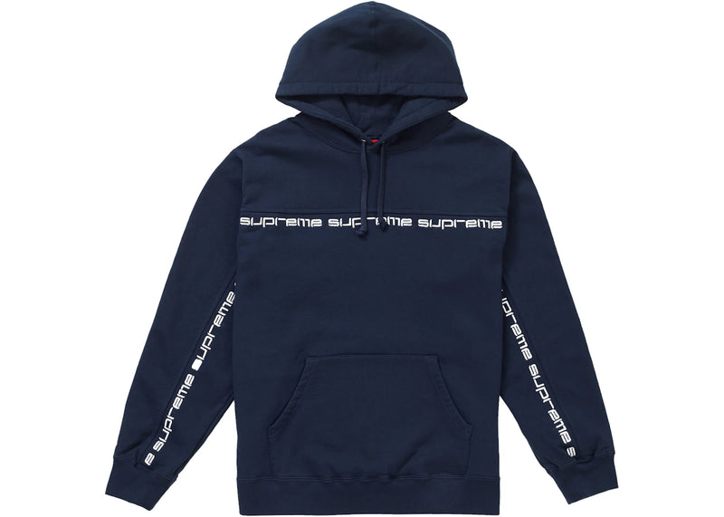 Supreme Text Stripe Hooded Sweatshirt Navy
