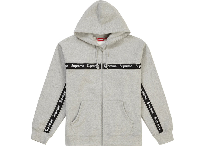 Supreme Text Stripe Zip Up Hooded Sweatshirt Heather Grey