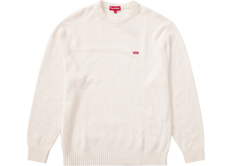 The Supreme Textured Small Box Sweater White is now available at Side Kicks!