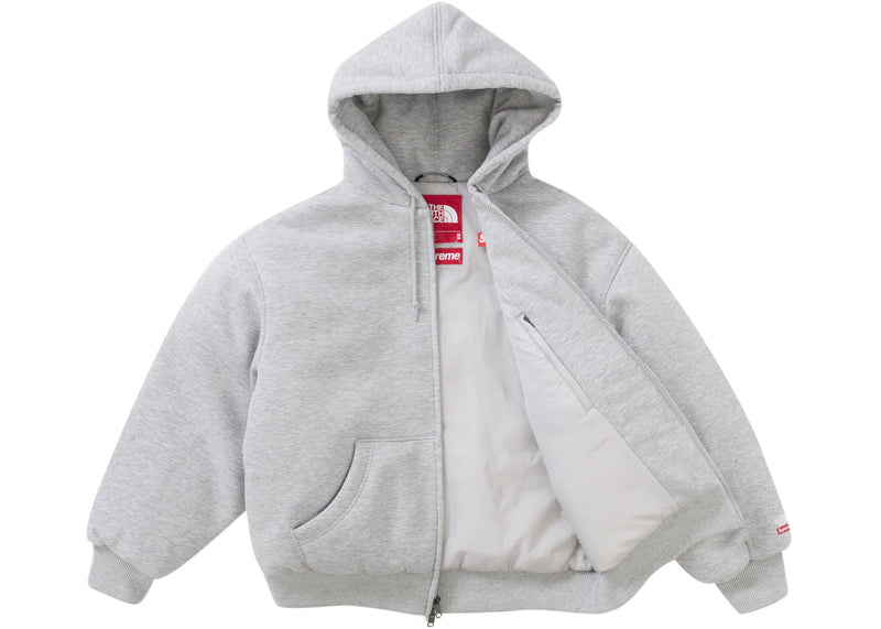Supreme The North Face Down Filled Zip Up Hooded Sweatshirt Heather Grey