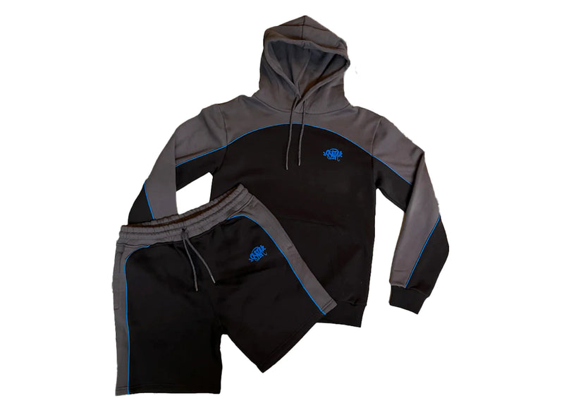 The Syna World Pipe Hoodie & Short Set Black/Grey/Blue is now available at Side Kicks!