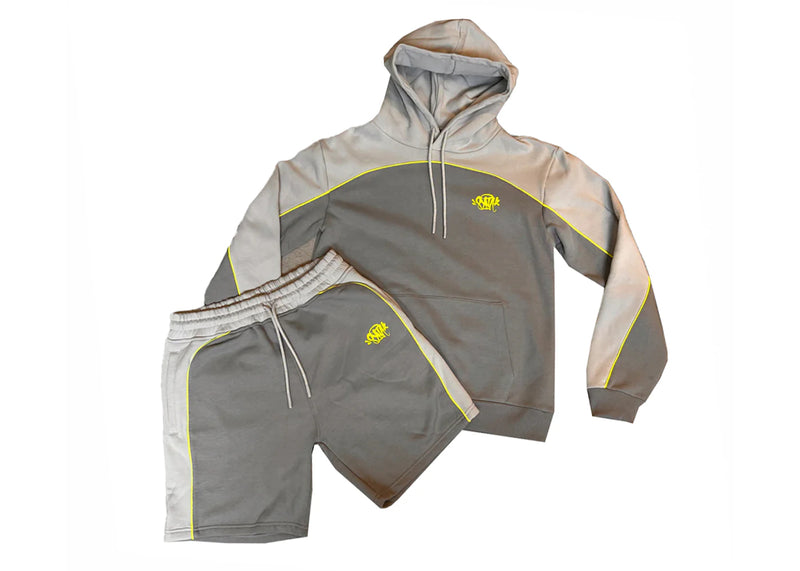 The Syna World Pipe Hoodie & Short Set Grey/Yellow is now available at Side Kicks!