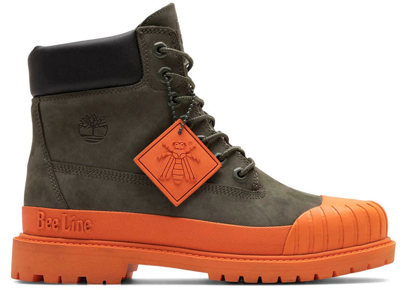 The Timberland 6" Boot Premium Bee Line Rubber Toe WP Dark Green Orange (Women's) is now available at Side Kicks!
