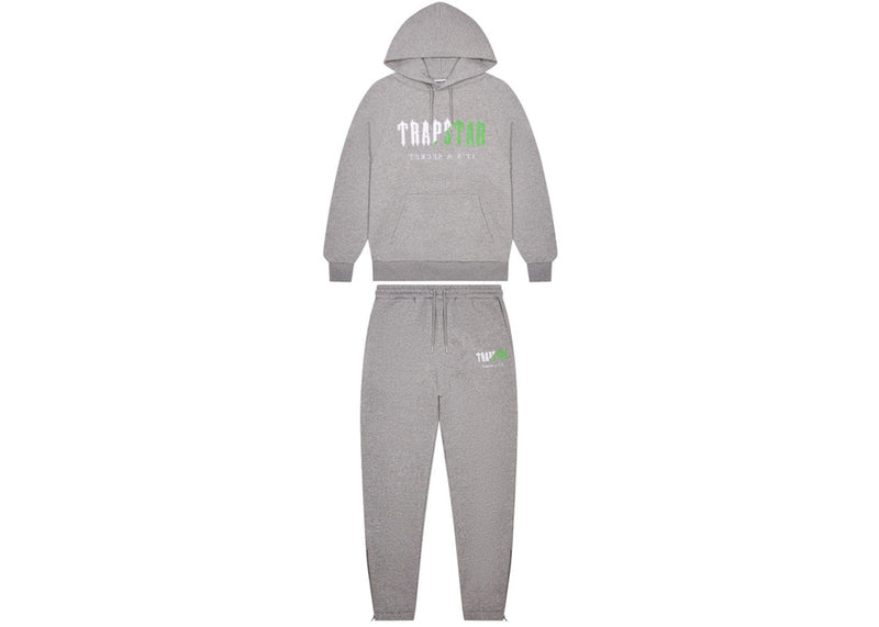 The Trapstar Decoded Chenille Hooded Tracksuit Grey/Green is now available at Side Kicks!
