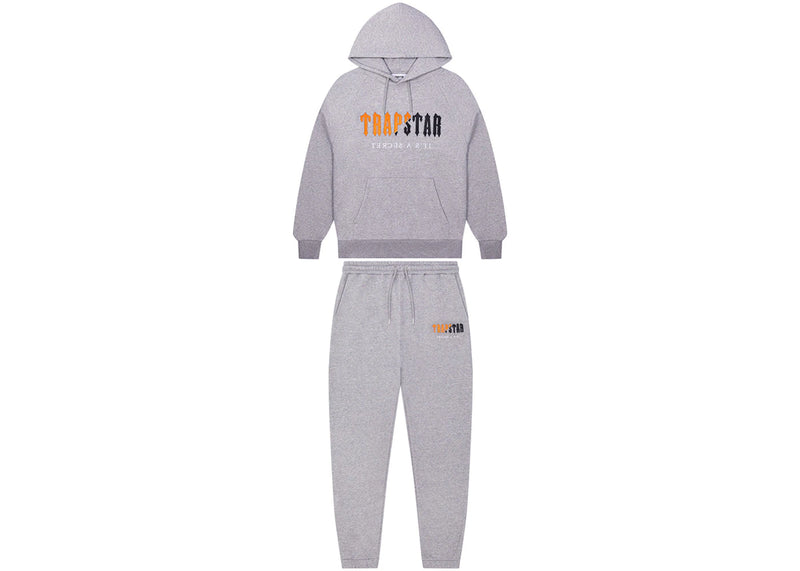The Trapstar Decoded Chenille Hooded Tracksuit Grey/Orange is now available at Side Kicks!