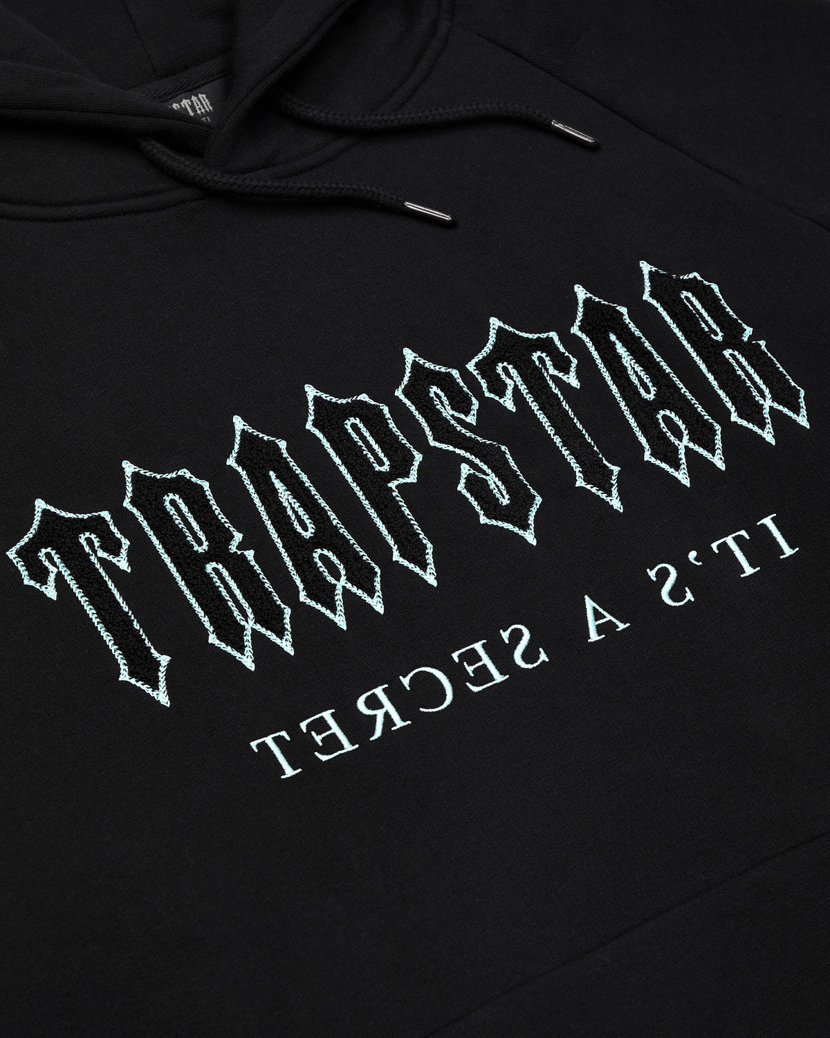 The Trapstar Decoded Solid Chenille Hooded Tracksuit - Black/Blue is now available at Side Kicks!