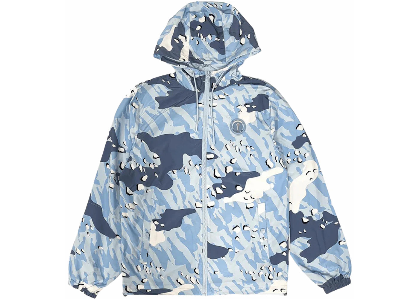The Trapstar Decoded Windbreaker Jacket Ice Blue Camo is now available at Side Kicks!