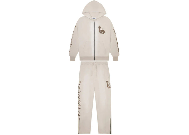 The Trapstar Script Spray Tracksuit Sand is now available at Side Kicks!