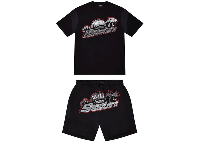 The Trapstar Shooters Hoodie Short Set Black/Red is now available at Side Kicks!