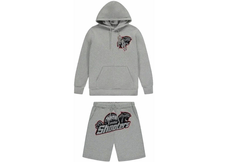 The Trapstar Shooters Hoodie Short Set Grey/Red is now available at Side Kicks!