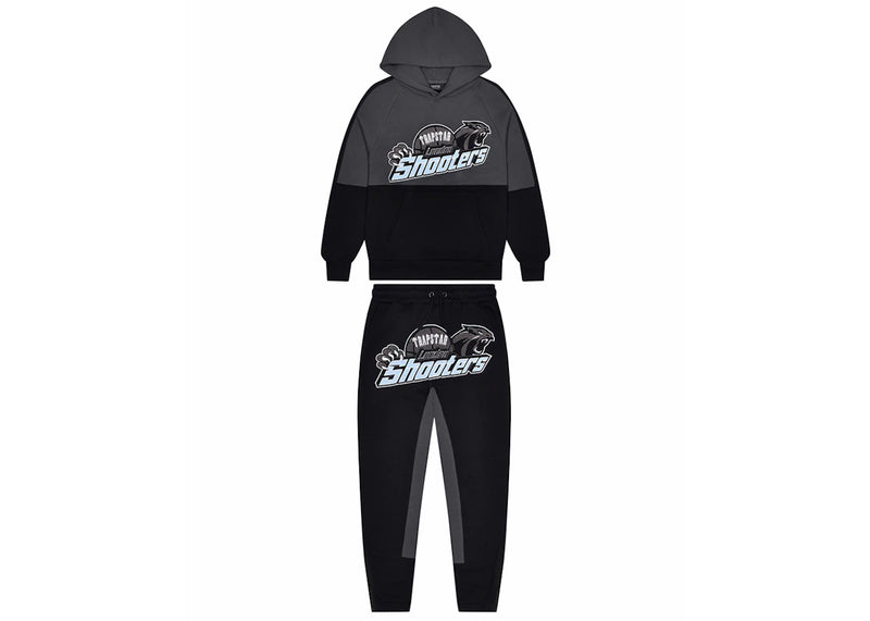 The Trapstar Shooters Panel Tracksuit Black/Blue is now available at Side Kicks!