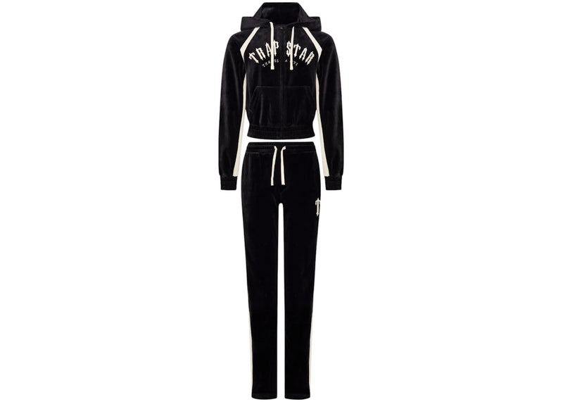 The Trapstar Women's Irongate Arch Velour Tracksuit Black is now available at Side Kicks!