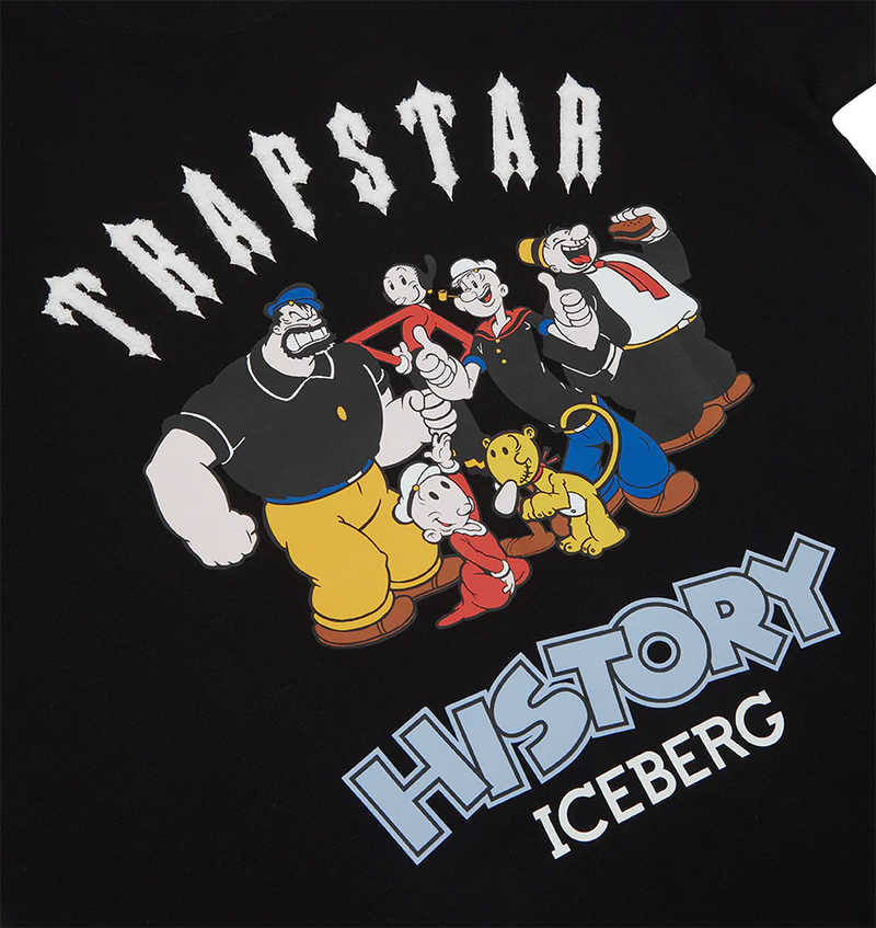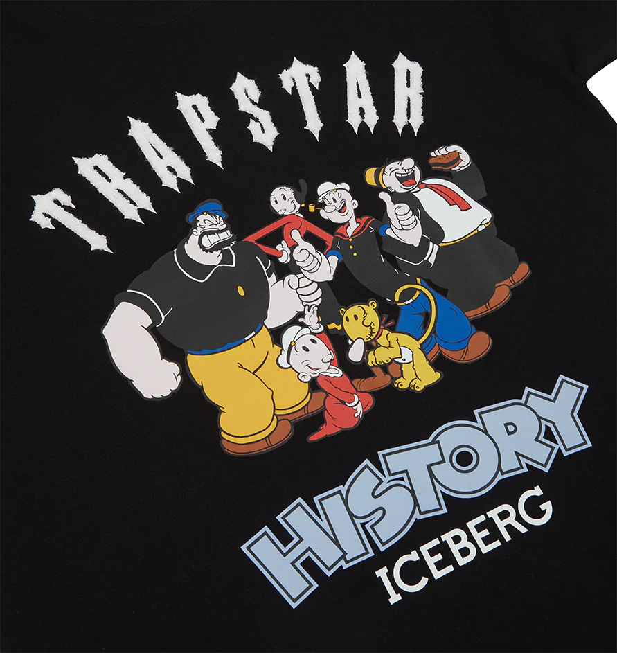 The Trapstar X Iceberg Popeye Chenille + Print Oversized T-Shirt - Black is now available at Side Kicks!