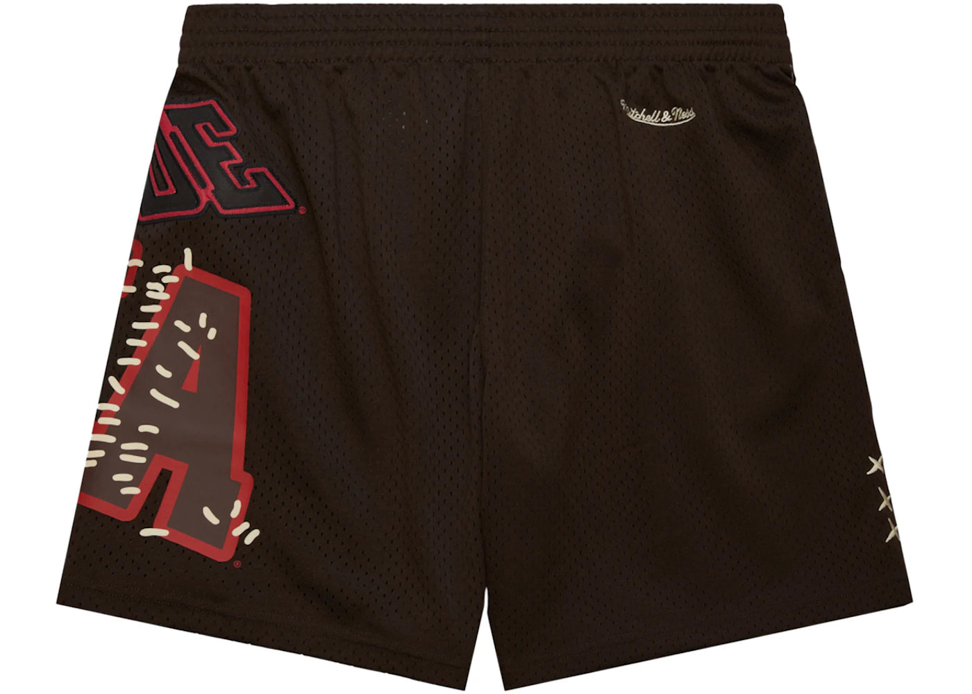 The Travis Scott x Mitchell & Ness Alabama Crimson Tide Basketball Shorts Brown is now available at Side Kicks!