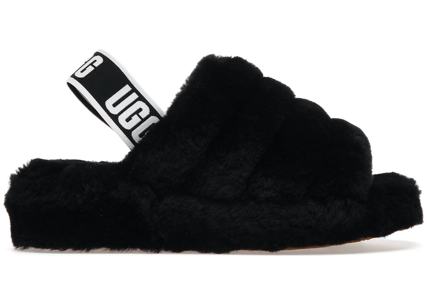 Released on June 1, 2021, the UGG Fluff Yeah Slide Black W is available now at Side Kicks.