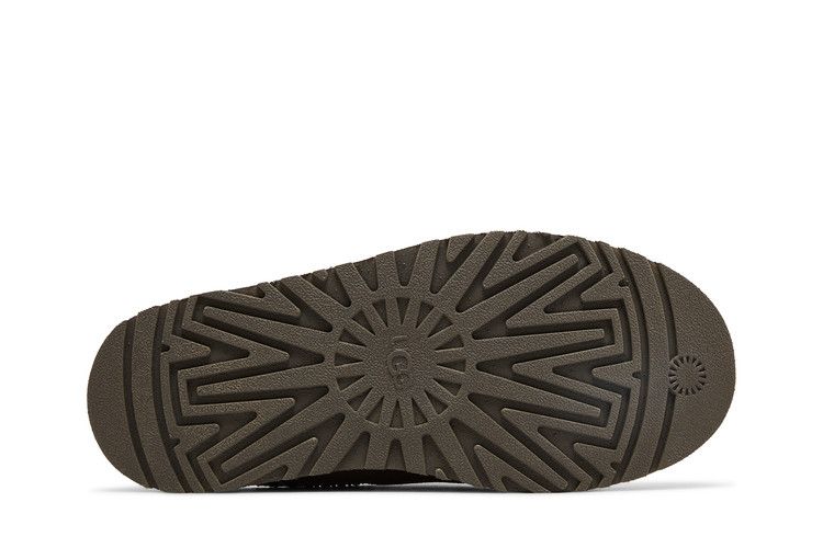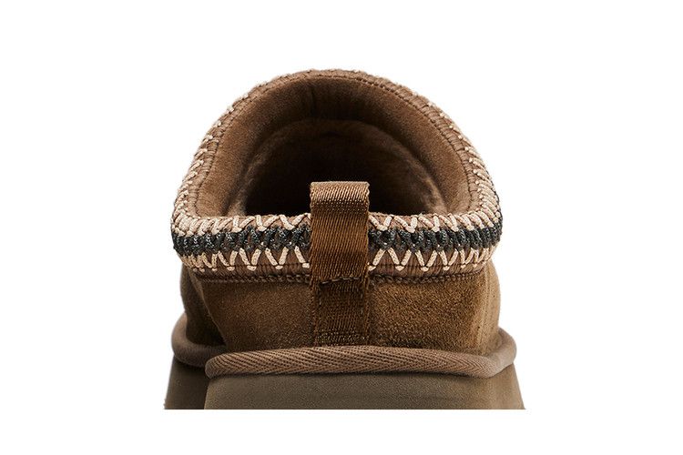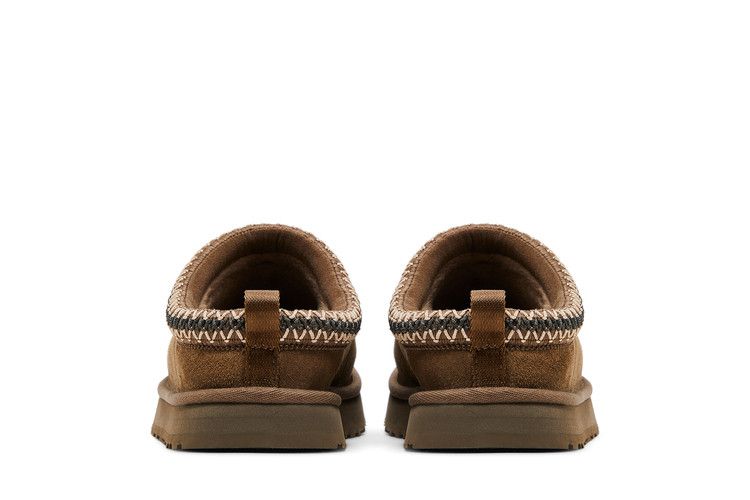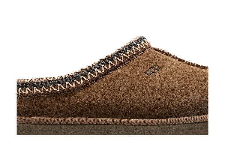 The UGG Tazz Slipper Hickory (Kids) features a Hickory suede upper in khaki green with tonal stitching and contrast UGGbraid detailing. A debossed logo, rubber sole, and heel tab complete...