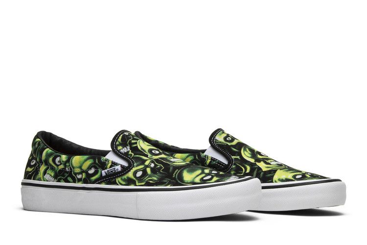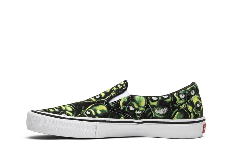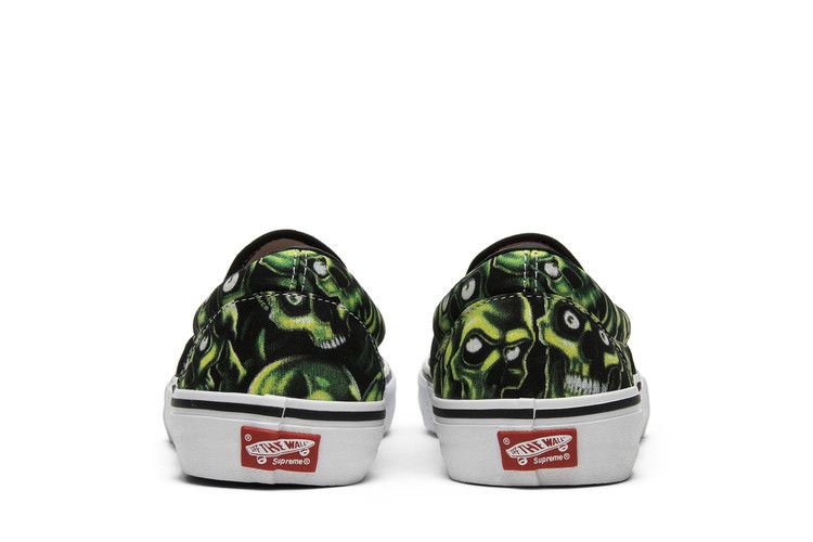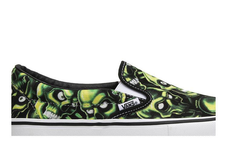 The Vans Slip-On Supreme Skull Pile (Green) is now available at Side Kicks!