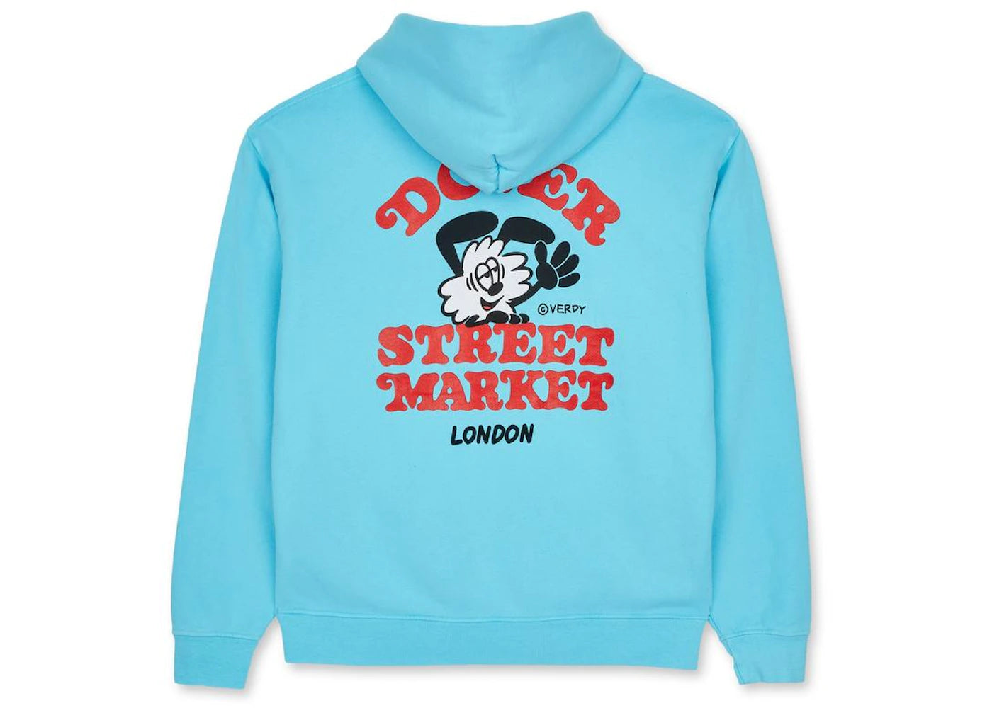The Verdy x Dover Street Market London Hoodie Blue/Red is now available at Side Kicks!
