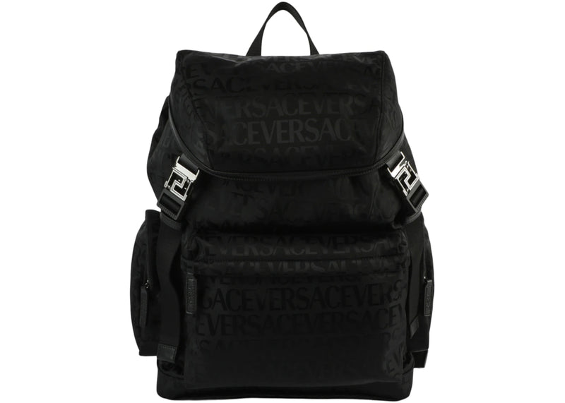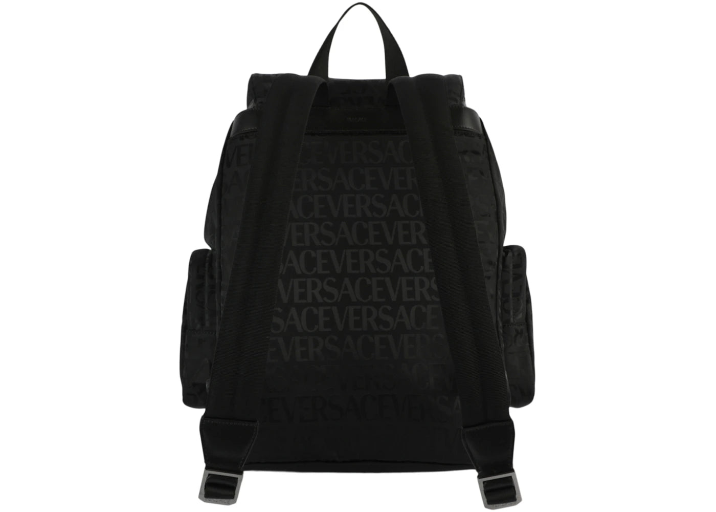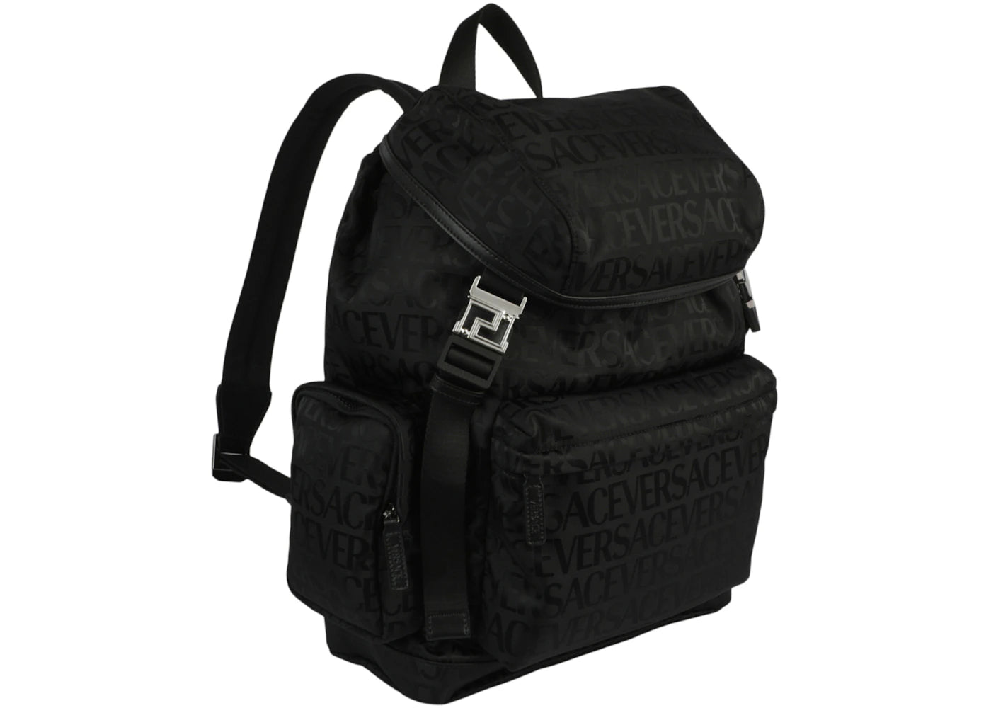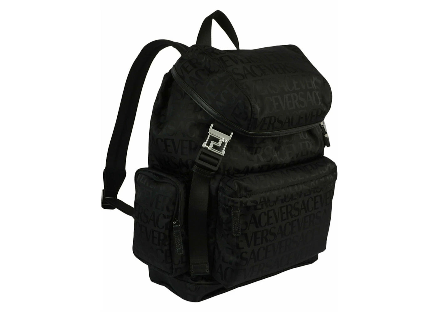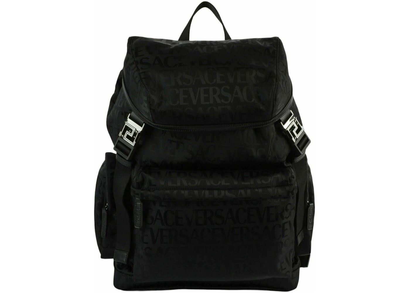 The Versace All Over Logo Nylon Backpack Black is now available at Side Kicks!