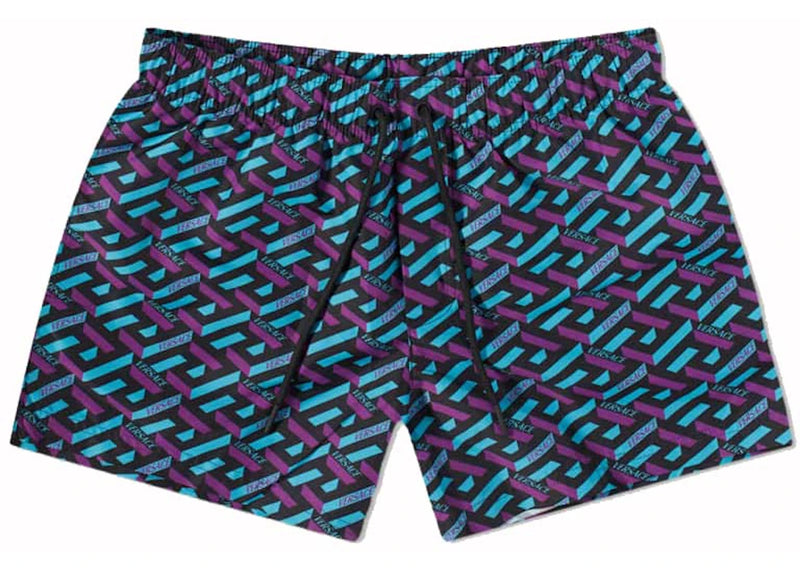 The Versace Geometric Print Swim Shorts Blue/Purple is now available at Side Kicks!