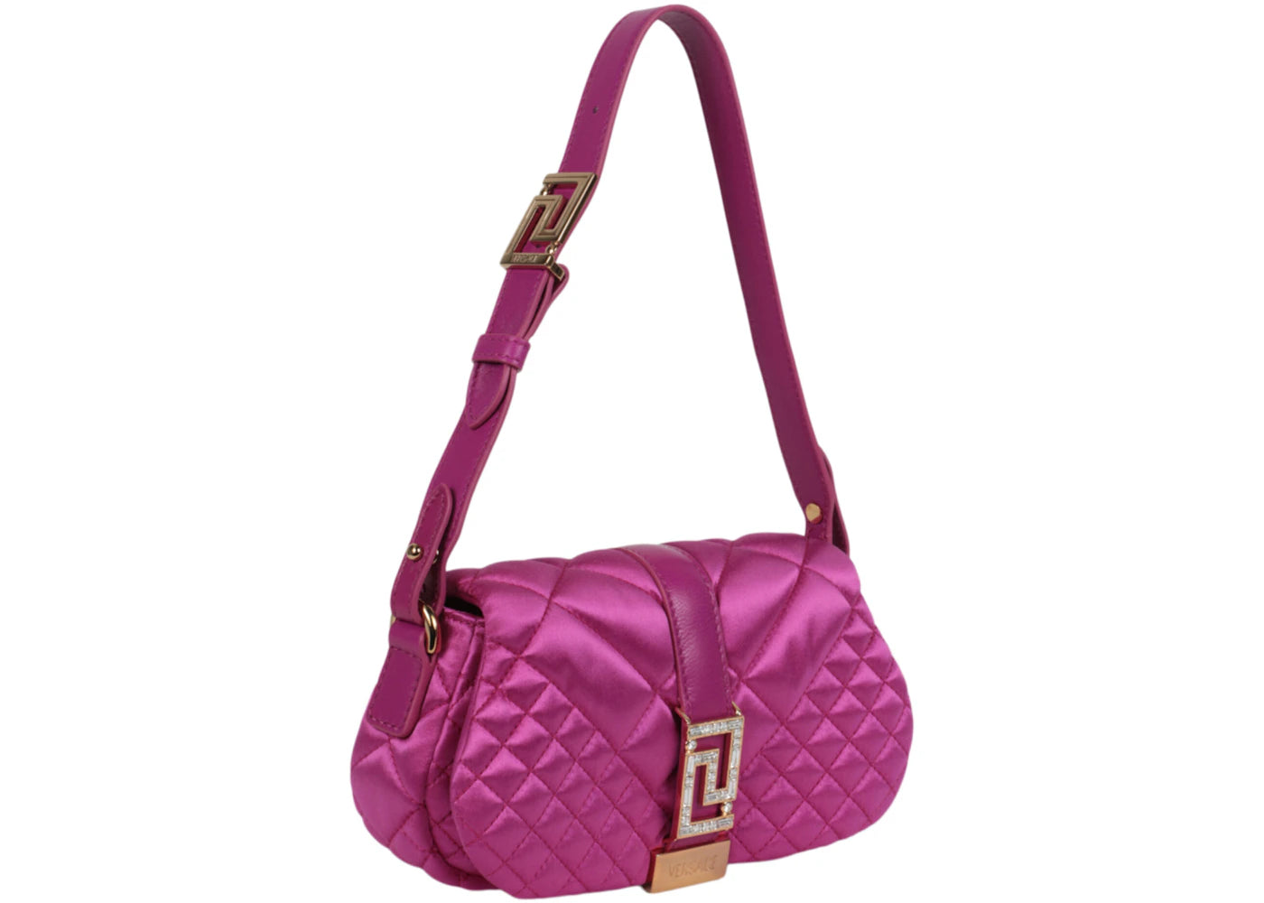 Versace Greca Goddess Satin Shoulder Bag Bright Pink