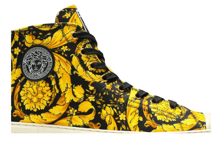 The Versace Greca High Top Barocco Print Black Gold is now available at Side Kicks!