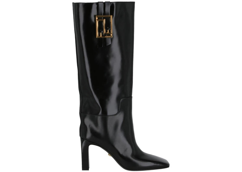 Versace Knee-High Meander Boots Black Leather (Women's)