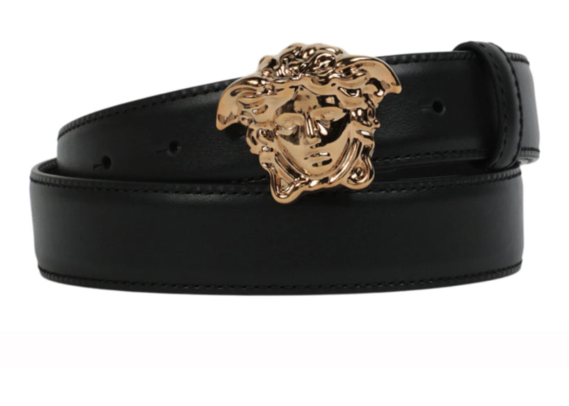 Versace La Medusa Buckle Leather Belt Black/Gold
