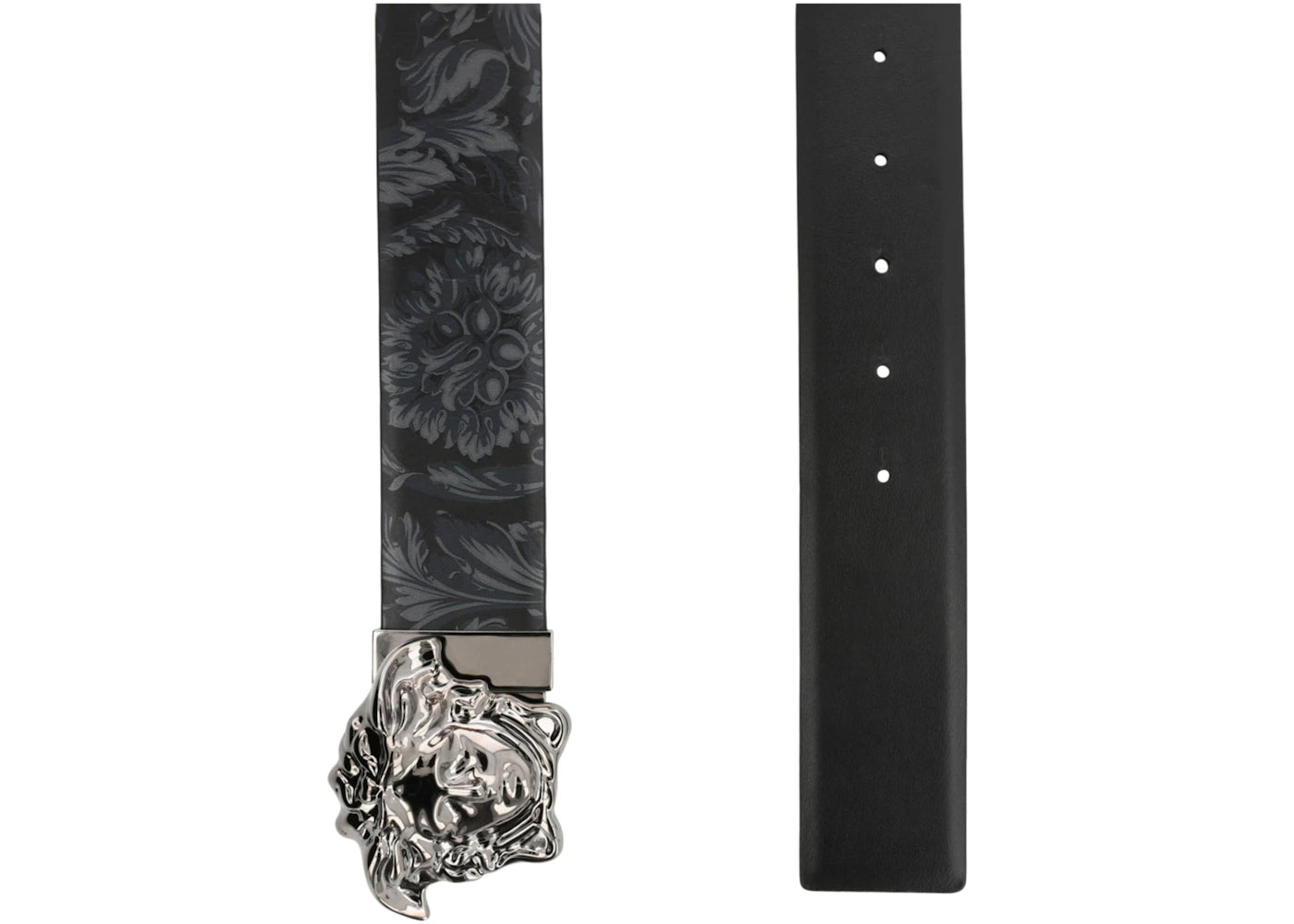 The Versace La Medusa Reversible Leather Belt Nickel-tone Black is now available at Side Kicks!