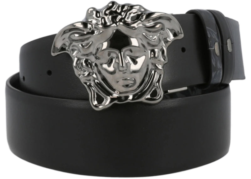 Versace La Medusa Reversible Leather Belt Nickel-tone Black