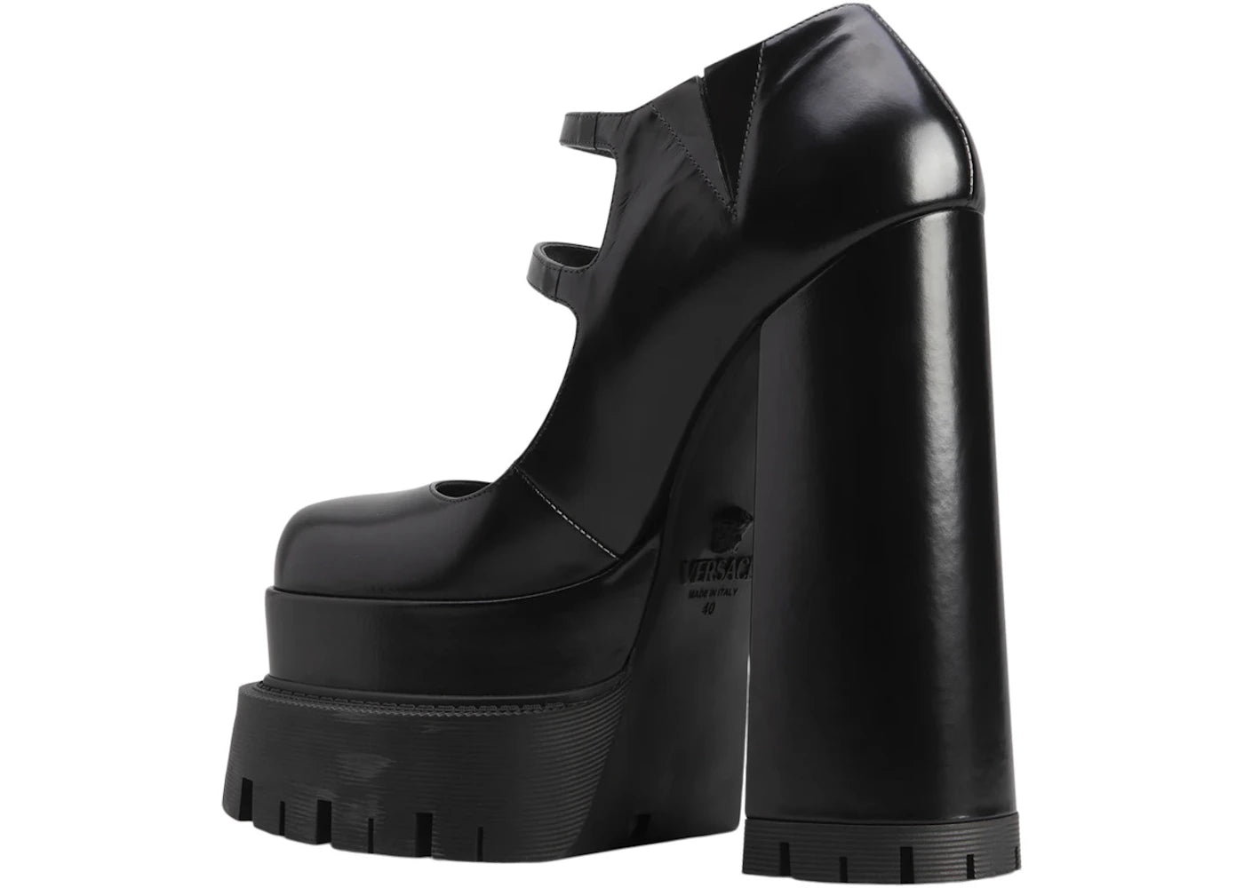 Versace Medusa Aevitas 165mm Platform Mary Janes Black Patent Leather