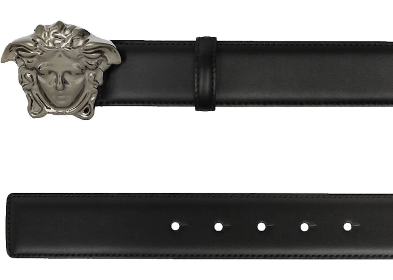 The Versace Palazzo Belt with Medusa Buckle Ruthenium-tone Black is now available at Side Kicks!