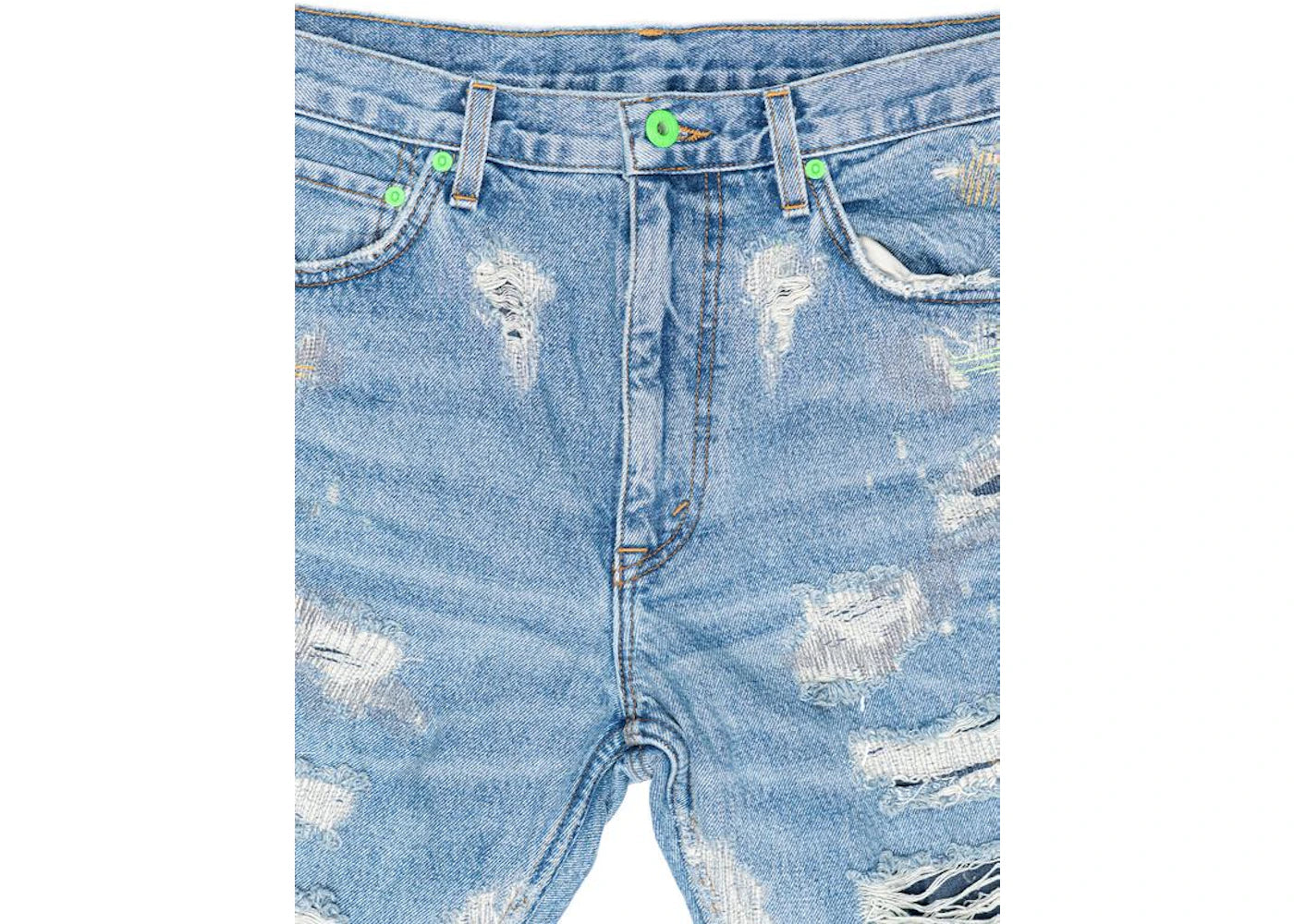 Vlone x Endless Embroidered and Distressed Denim Jeans Neon Green