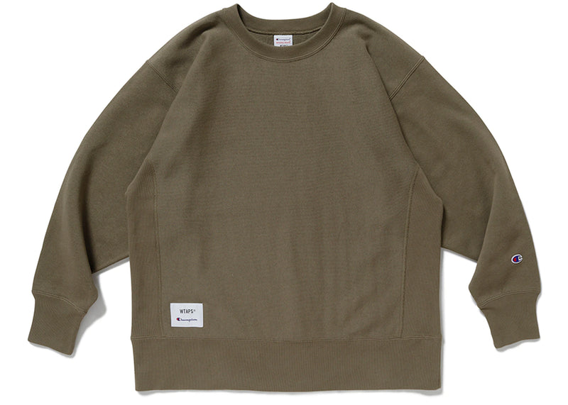 The WTAPS x Champion Reverse Weave (R) Crew Neck Sweatshirt Olivedrab is now available at Side Kicks!