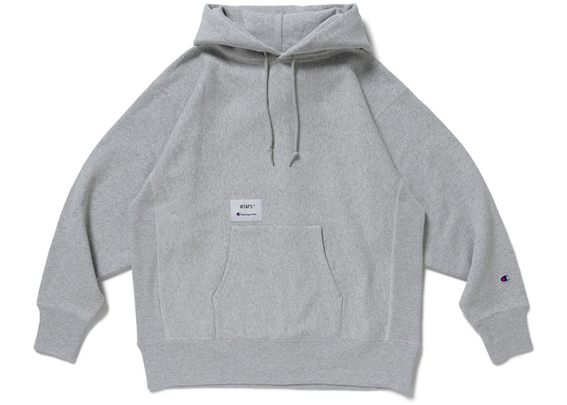 The WTAPS x Champion Reverse weave (R) Hooded Sweatshirt Oxford Gray is now available at Side Kicks!