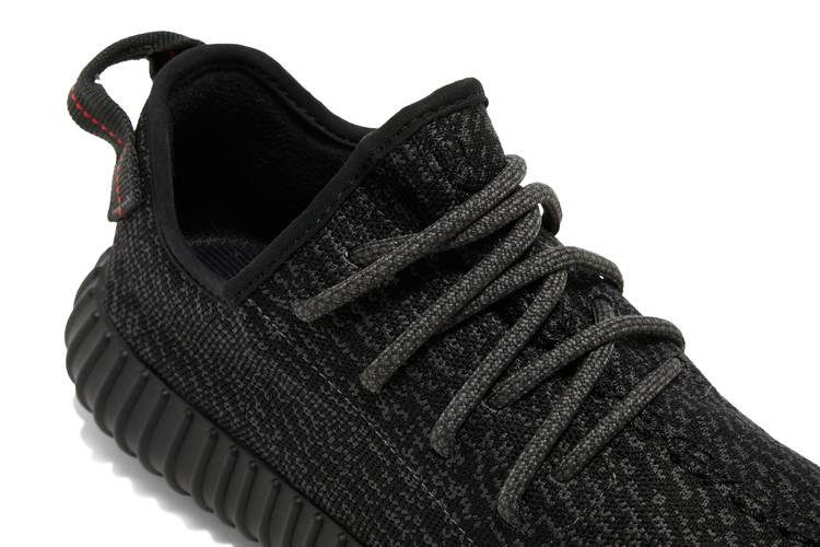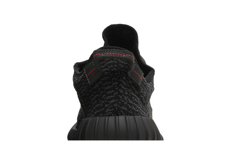 The Yeezy Boost 350 'Pirate Black' 2023 features a one-piece Primeknit upper in black and grey with a red stitching pull tab at the heel. The midsole is equipped with full-length Boost cushioning for comfort and impact protection. A protective rubber cage wraps around the midsole, providing durability and support. This edition pays homage to the original 'Pirate Black' colorway with a minimalist design and premium materials.
